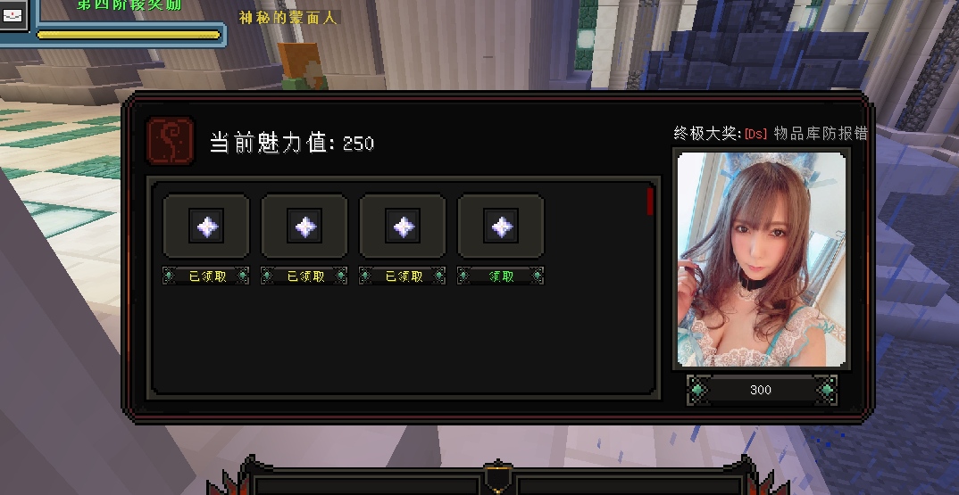 3、达到一定的魅力值,可以领取相对应的奖励(奖励配置表设置)